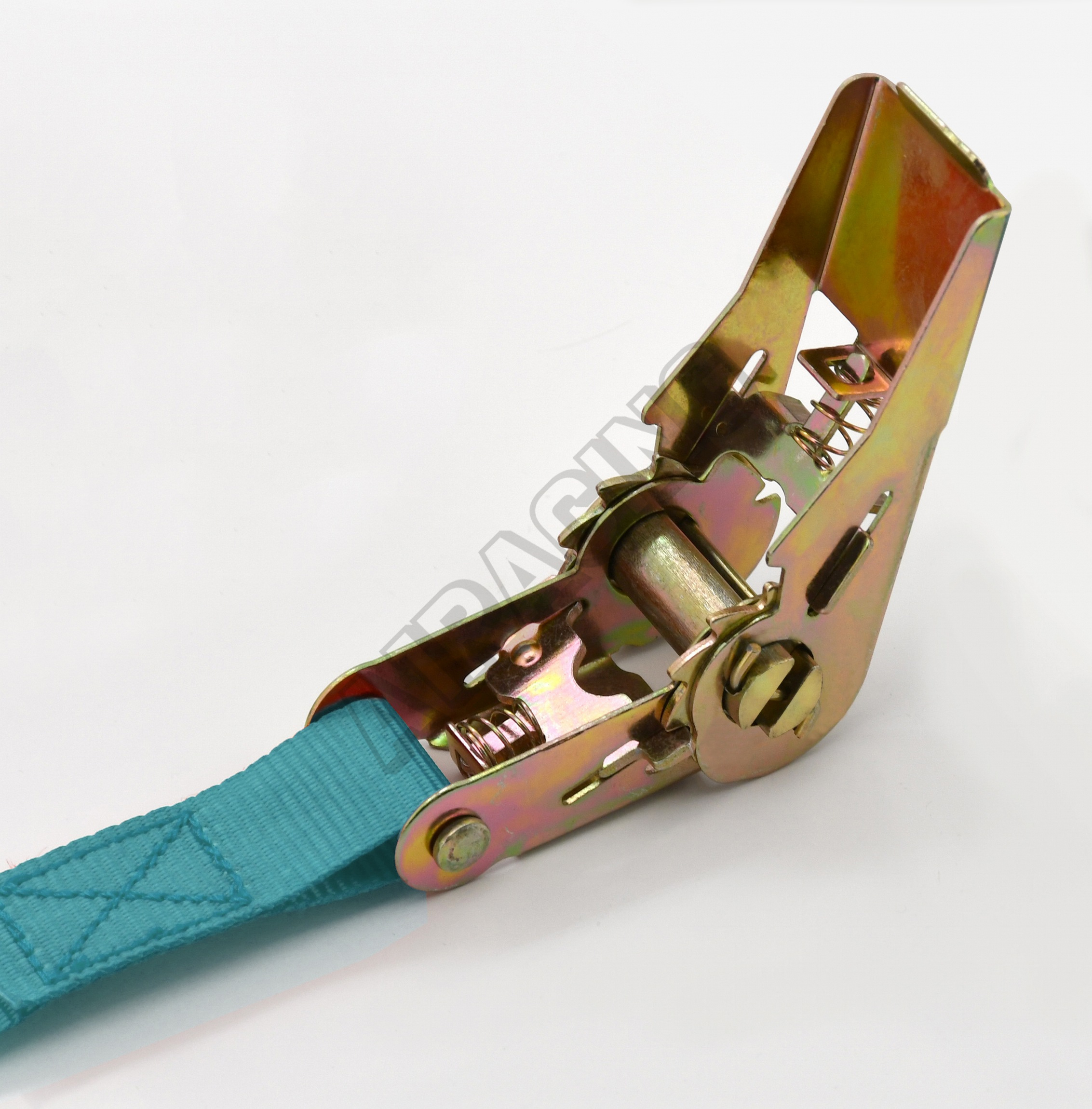 Upínací popruhy s celokovovým ráčnovým mechanismem mají šířku popruhu 25 mm a délku 5m. Zakončení popruhů je řešeno kovovými háky s plastovým povrchem, v sadě jsou dva páry těchto upínačů s tažnou sílou 250daN.