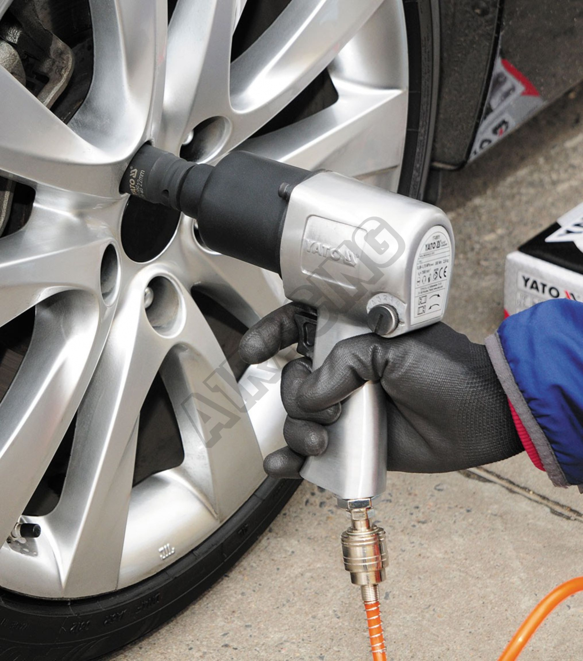 Kvalitní rázový pneumatický utahovák Yato s kroutícím momentem 550 Nm.