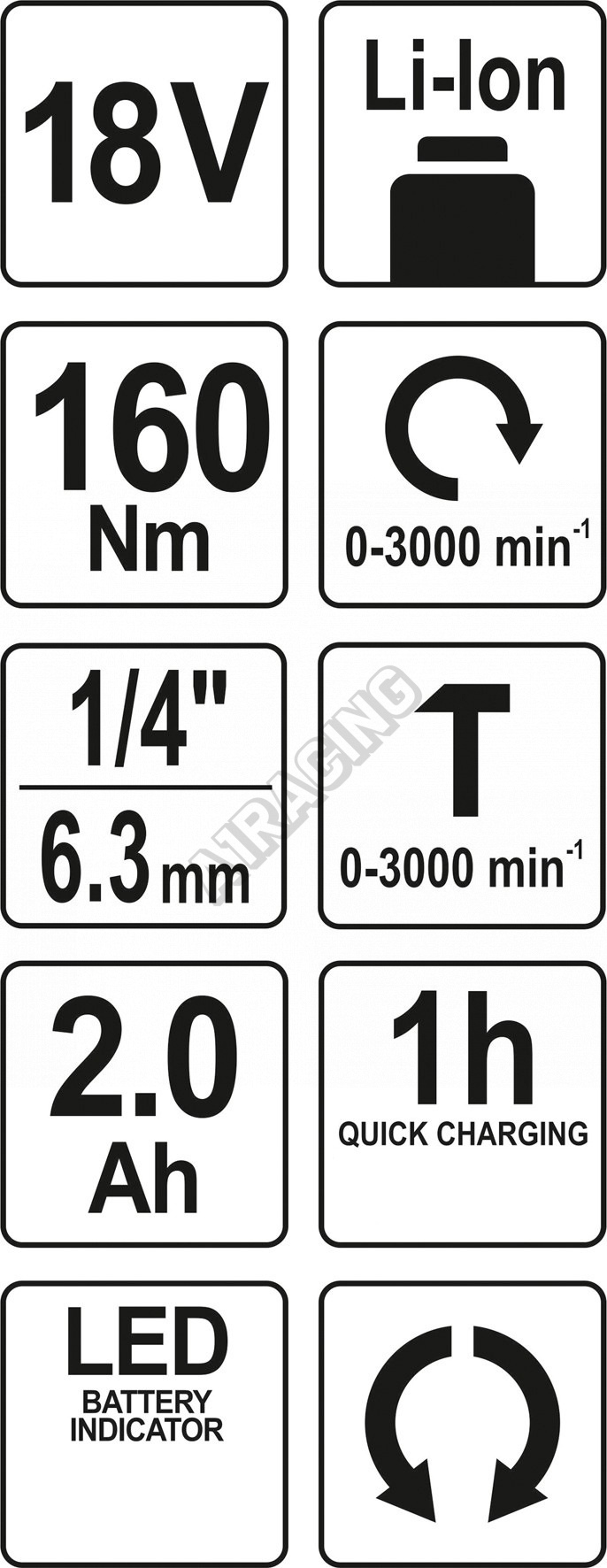 Díky dostatečnému výkonu rázový utahovák odstraní matici kola během několika vteřin. Točivý moment působící na matici kola se zvyšuje s každým dalším nárazem. Vysoký točivý moment zajišťuje 18 V Li-ion baterie, která je plně nabitá během 1 hodiny.