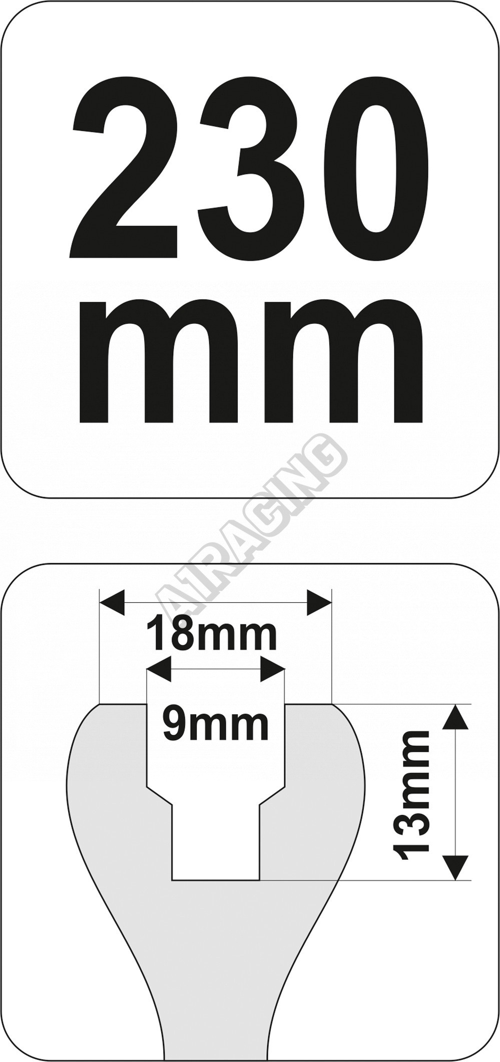 Část klíče určená pro demontáž sponek má rozměry 9 x 13 mm.