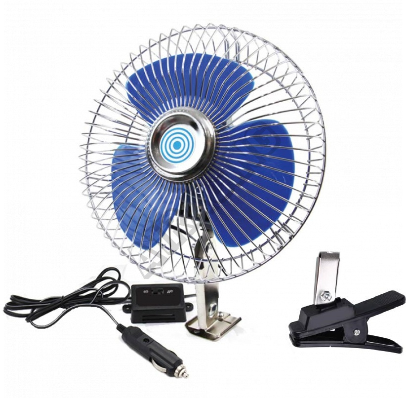 Ventilátor 12V otočný 21 cm + klips Velký kovový ventilátor AMiO napájený z 12V zásuvky zapalovače