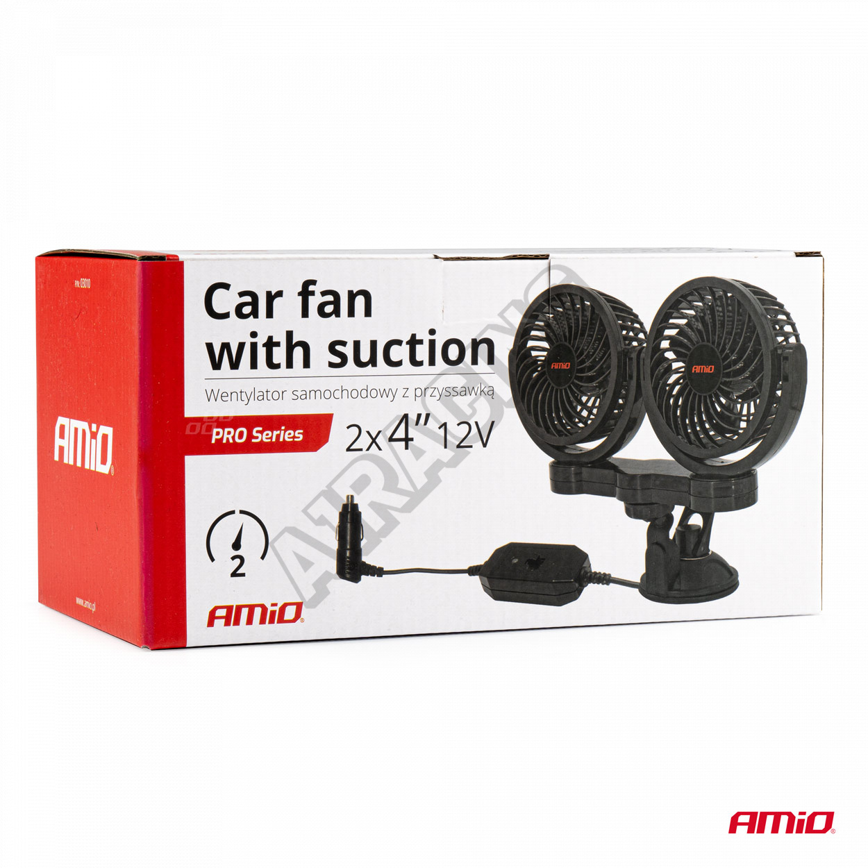 AMiO PRO VENTILÁTOR VENTILÁTOR DO AUTA NAPÁJENÝ Z AUTONABÍJEČKY 12V 2x 10 cm DVOJITÝ PŘIPEVNĚNÝ NA PŘÍSAVKU