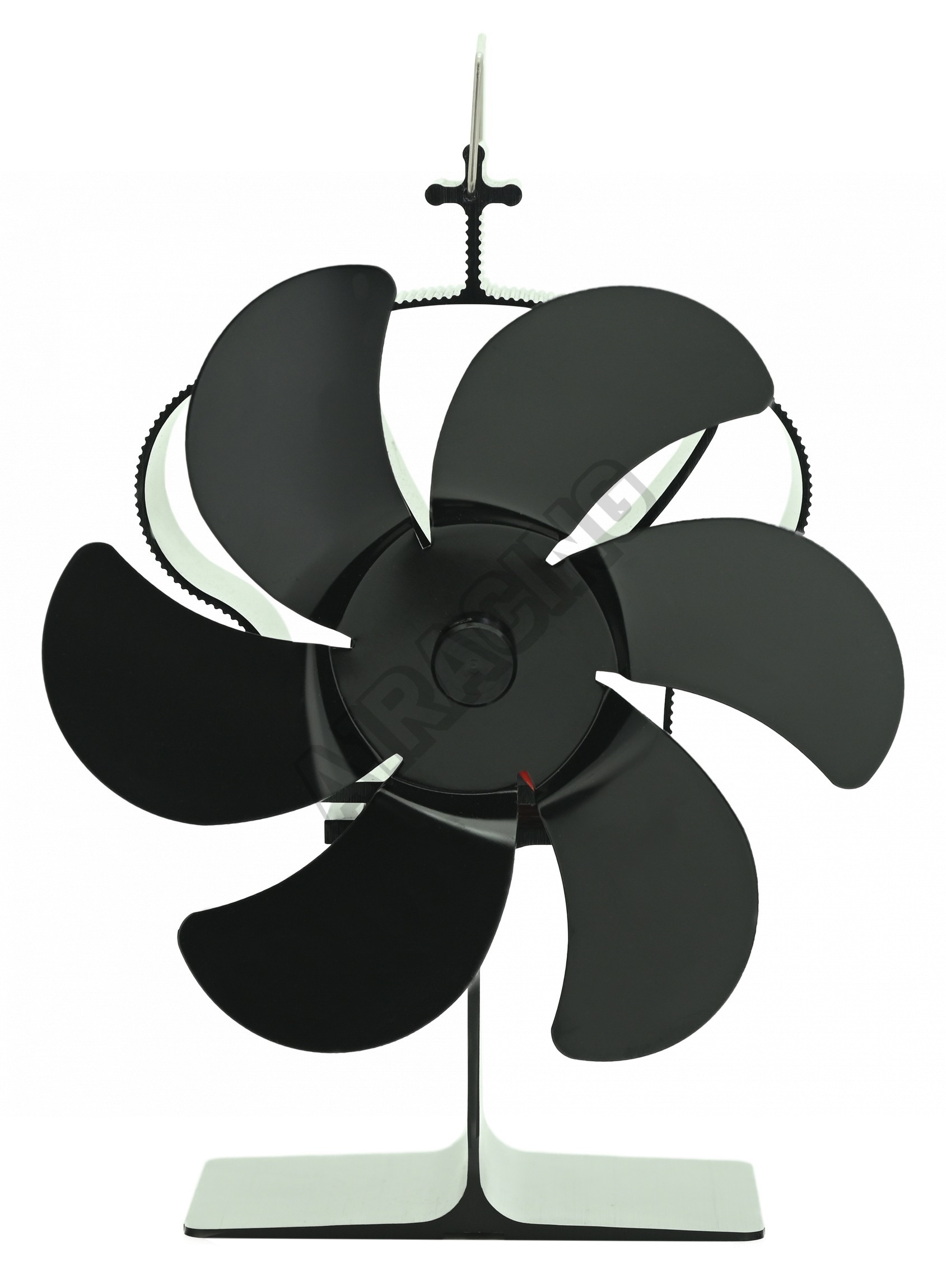 Šestilopatková vrtule se začne plynule rozbíhat přibližně při 80°C a s rostoucí teplotou (optimální rozsah 80–250 °C) se zvýší otáčky i objem proudícího vzduchu. Vrtule o průměru 150 mm dokáže rozhýbat proudění až na úroveň okolo 190 m3/h a svým tichým chodem neruší atmosféru u krbu.