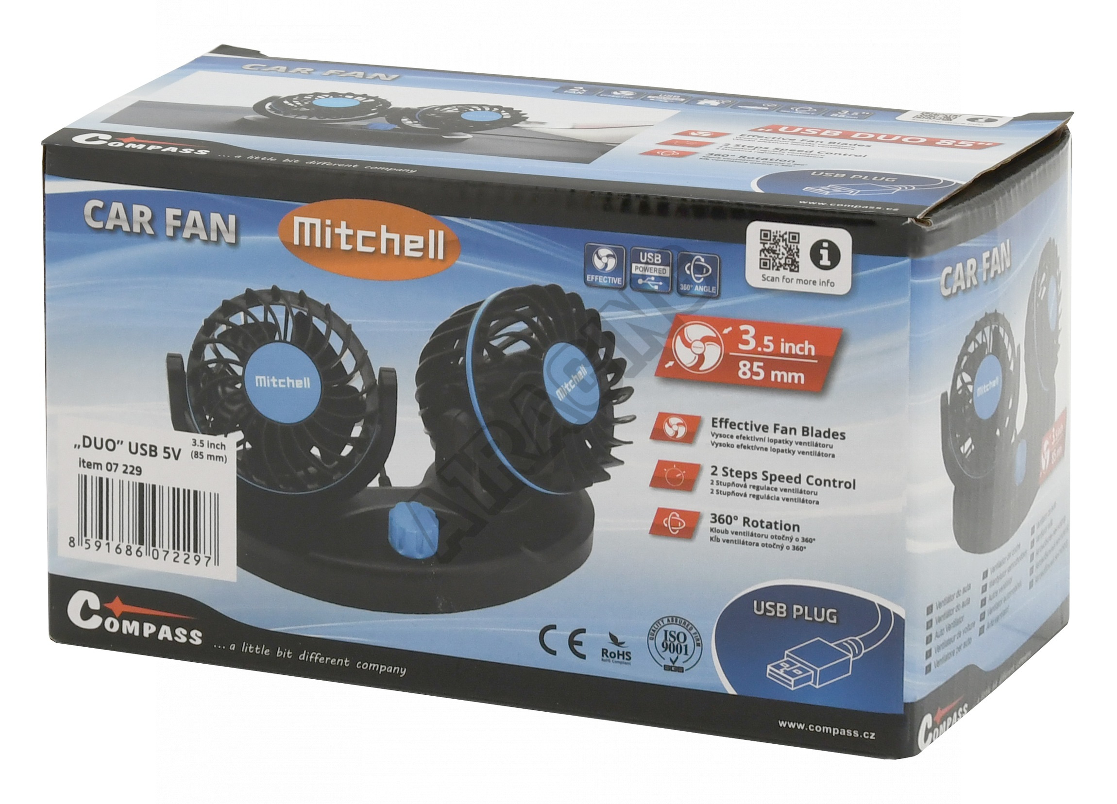 Recenze k produktu Ventilátor MITCHELL DUO 2x85mm USB 5V na palubní desku