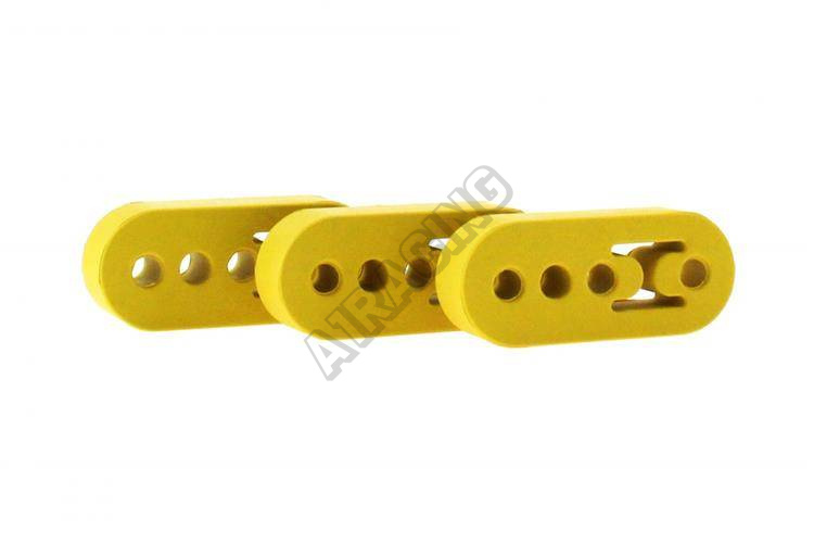 Sportovní držák tlumiče. Průměr otvorů: 11mm Rozměry: 108x45x22mm Barva: Žlutá
