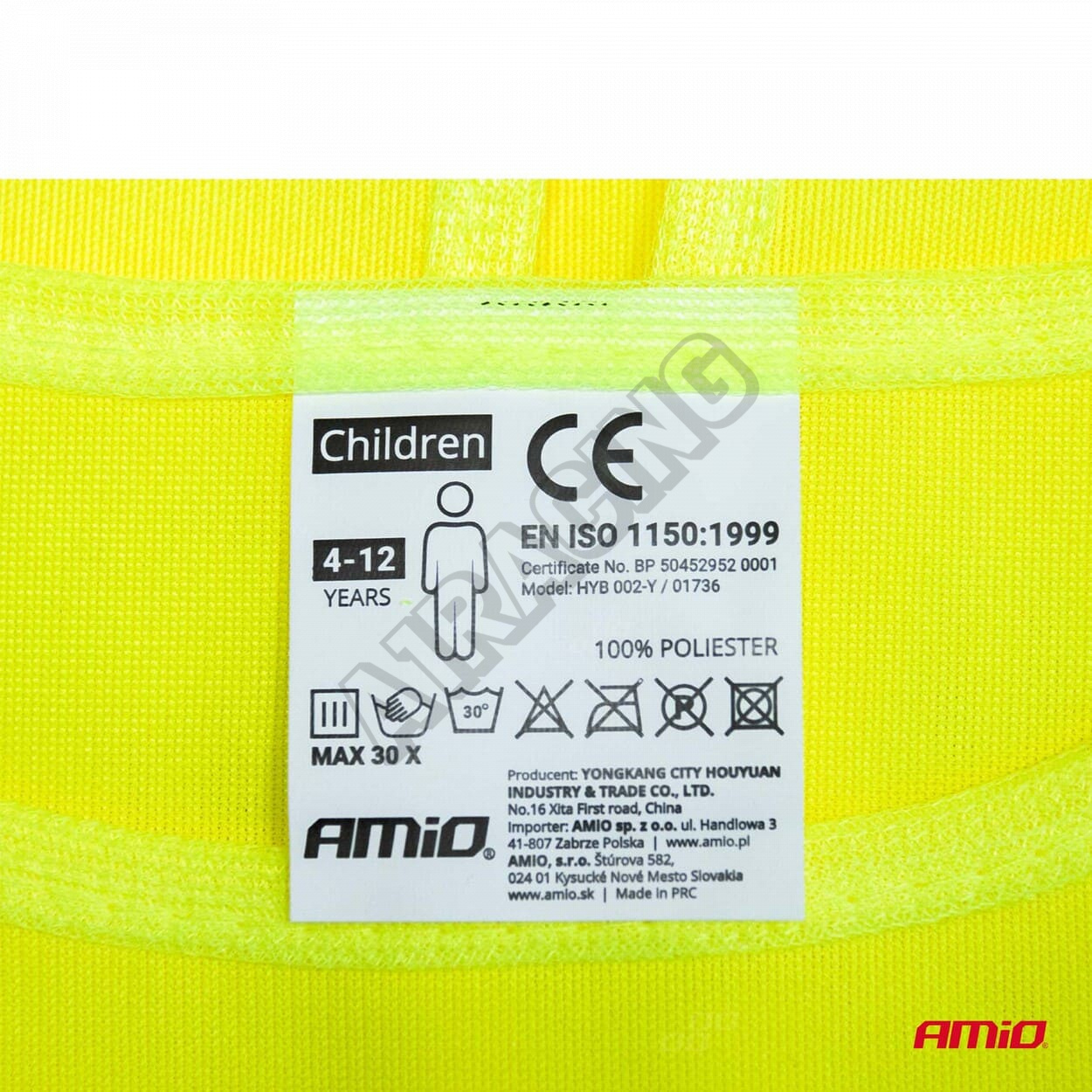 Vesta výstražná žlutá dětská pro věk 4-12 let Výstražná reflexní vesta se zapínáním na suchý zip. D
