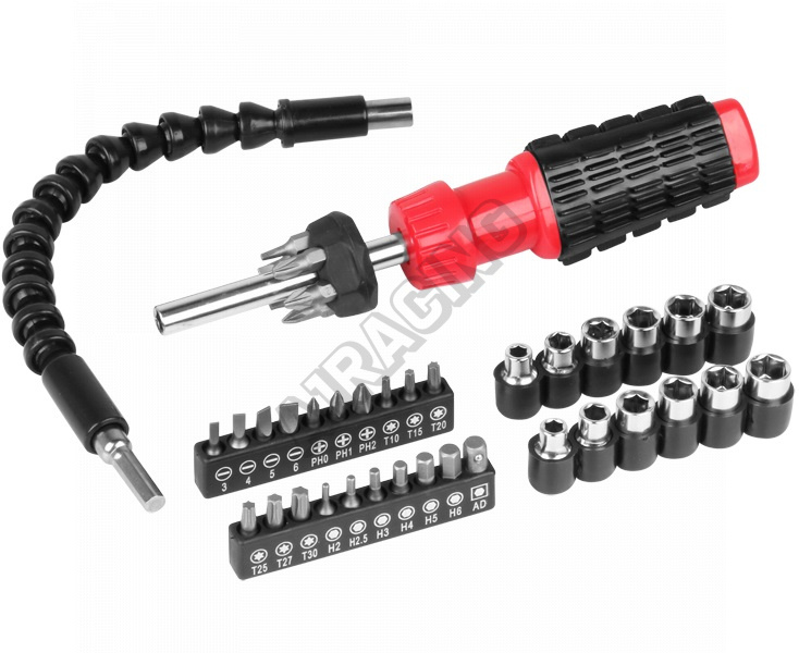 Víceúčelový šroubovák s příslušenstvím Součástí balení jsou sada bitů, nástavců pro křížový a ploch