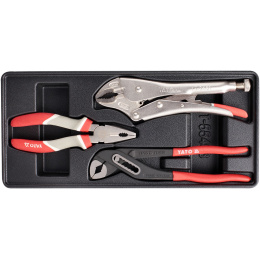 Sada 3 kusů kleští z oceli. Sada je přehledně srovnána ve vložce do zásuvky z PVC.