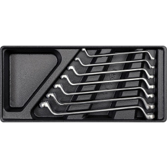 Sada 7 kusů očkových klíčů z CrV oceli. Klíče jsou přehledně srovnány ve vložce do zásuvky z PVC.