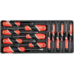 Sada 13 kusů šroubováků z oceli. Sada je přehledně srovnána ve vložce do zásuvky z PVC.