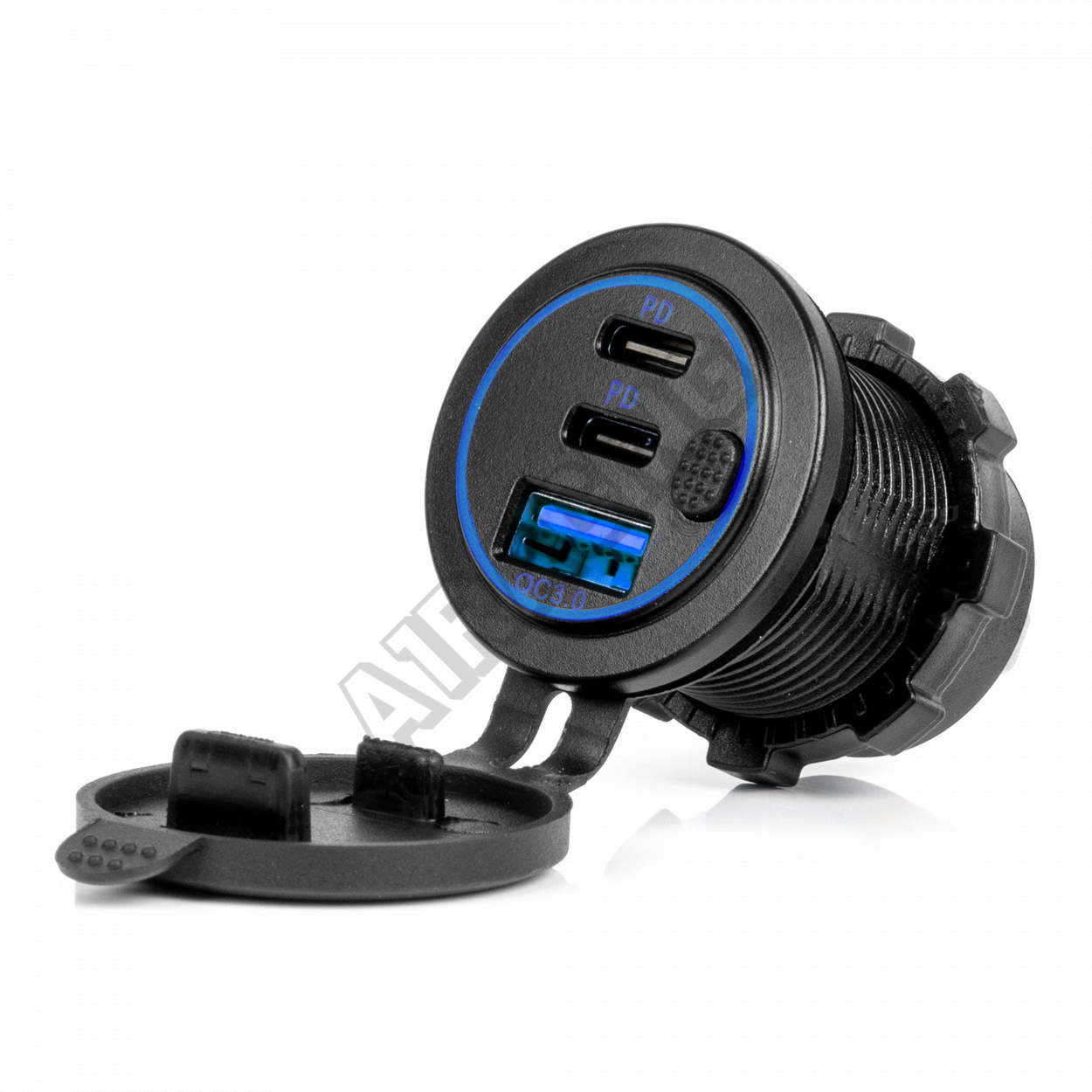 Investujte do vysoce kvalitní nabíječky a užívejte si rychlé a bezpečné nabíjení svých zařízení, ať jste kdekoli! Vyberte si naši vodotěsnou nabíječku se zásuvkami USB a 2xUSB C s přepínačem a modrým LED podsvícením a zvyšte standardy svého vozidla!