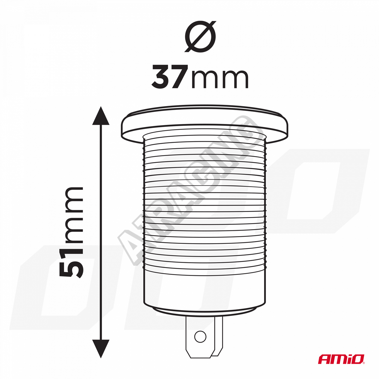 Vodotěsná automobilová nabíječka s USB porty a vypínačem USB + 2x USB-C QC3.0 12V 24V AMIO-04596
