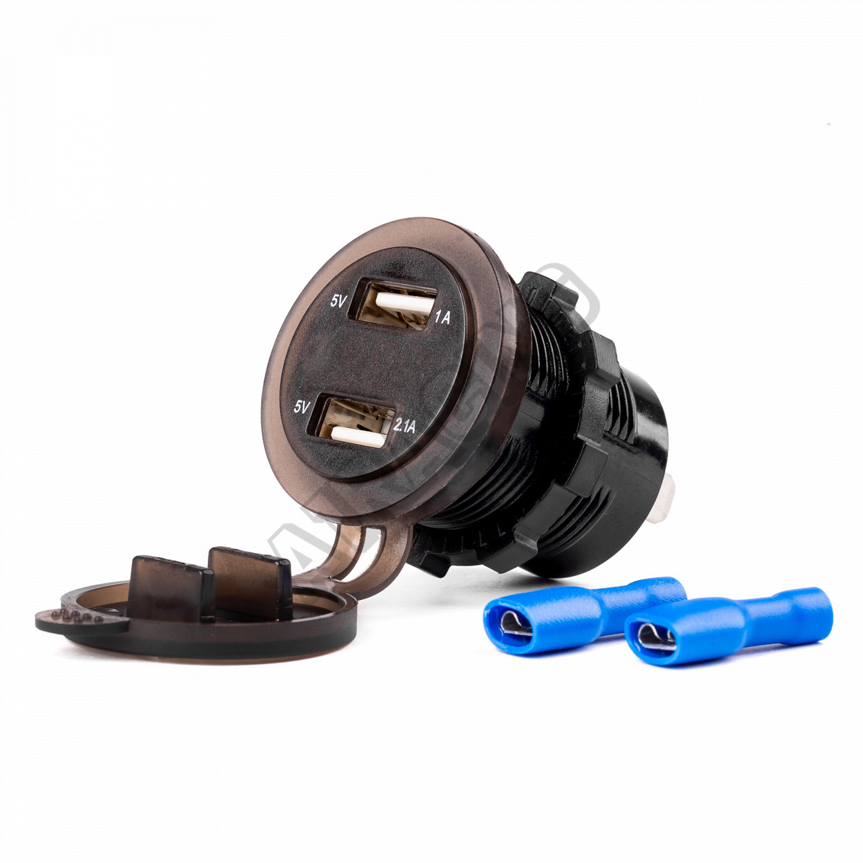Vodotěsná nabíječka s testerem napětí 2xUSB 12/24V MOD-11 Použití: motocykly, čtyřkolky, lodě, skút