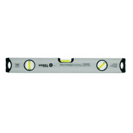 Vodováha vyrobená z eloxovaného hliníkového profilu. Má tři lahvičky pro označení svislého, vodorovn