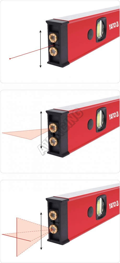 Úhel testovaný nebo nastavený uživatelem může být posouván dále pomocí úrovně laseru umístěného v čele. To umožní promítnout body, spojnice, nebo čáry protínající se v pravých úhlech.
