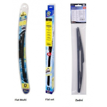 Stěrače FLAT SET (sada 2 ks na celé auto). Vysoce kvalitní pružný člen plochého stěrače zajišťuje stejnoměrný tlak grafitového břitu v celé jeho délce, což zamezuje rozmazávání nečistot a vytváření pruhů.