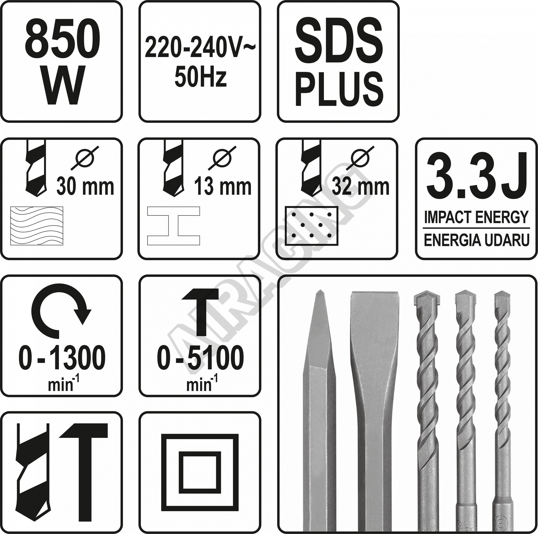 Vrtací kladivo SDS+ a 13 mm sklíčidlem 850W