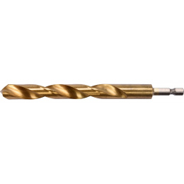 Vyrobeno z rychlořezné HSS oceli s Titanovým povlakem a vrcholovým úhlem 135°. Vrták je opatřen HEX 1/4" uchycením.
