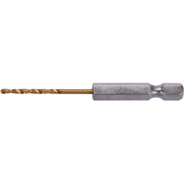 Vyrobeno z rychlořezné HSS oceli s Titanovým povlakem a vrcholovým úhlem 135°. Vrták je opatřen HEX 1/4" uchycením.