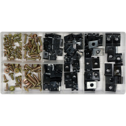 Sada 170 ks vrutů a karosářských podložek. Vše je přehledně uspořádáno v kompaktním plastovém kufřík