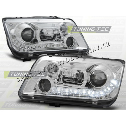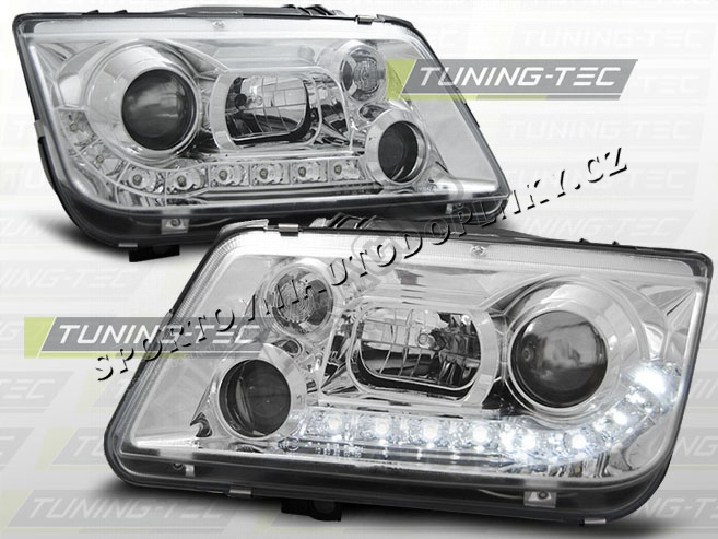 VW BORA 1998-05 PŘEDNÍ ČÍRÁ SVĚTLA DAYLIGHT LED CHROME