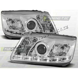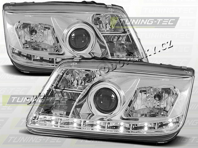 VW BORA 1998-05 PŘEDNÍ ČÍRÁ SVĚTLA DAYLIGHT LED CHROME