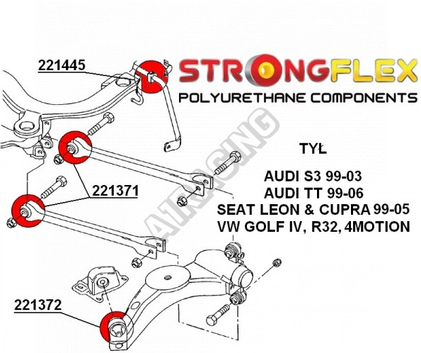 VW Bora StrongFlex Sport sestava silentbloků jen pro zadní nápravu 8 ks obsahuje: