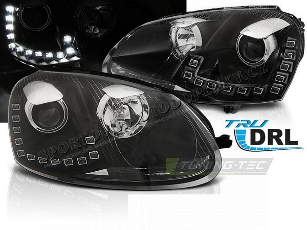 VW Golf 5 10.2003-09 přední čirá světla LED DRL black