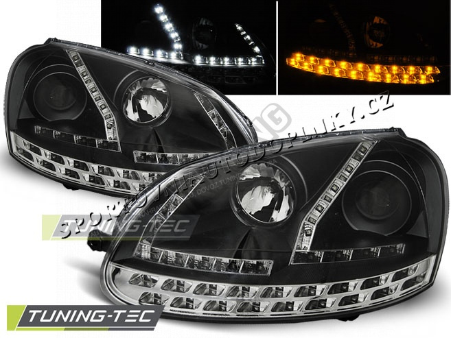 VW GOLF 5 2003-08 PŘEDNÍ ČÍRÁ SVĚTLA DAYLIGHT LED BLACK