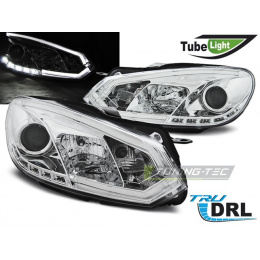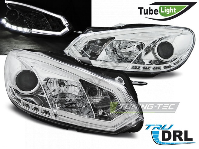 VW Golf 6 10.08-12 přední čirá světla Tube Lights TRU DRL chrome