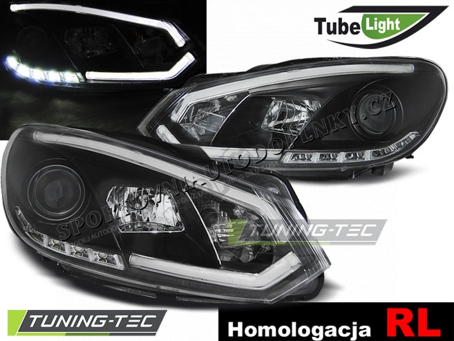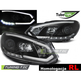 VW Golf 6 10.2008- přední čirá světla LED Tube Lights black
