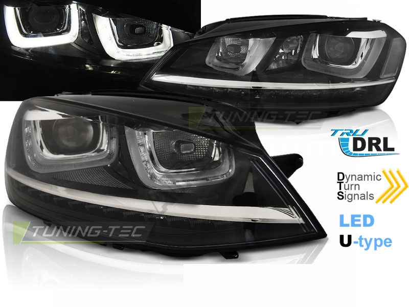 VW Golf 7 11.12-17 přední čirá světla U-Type black DRL SEQ