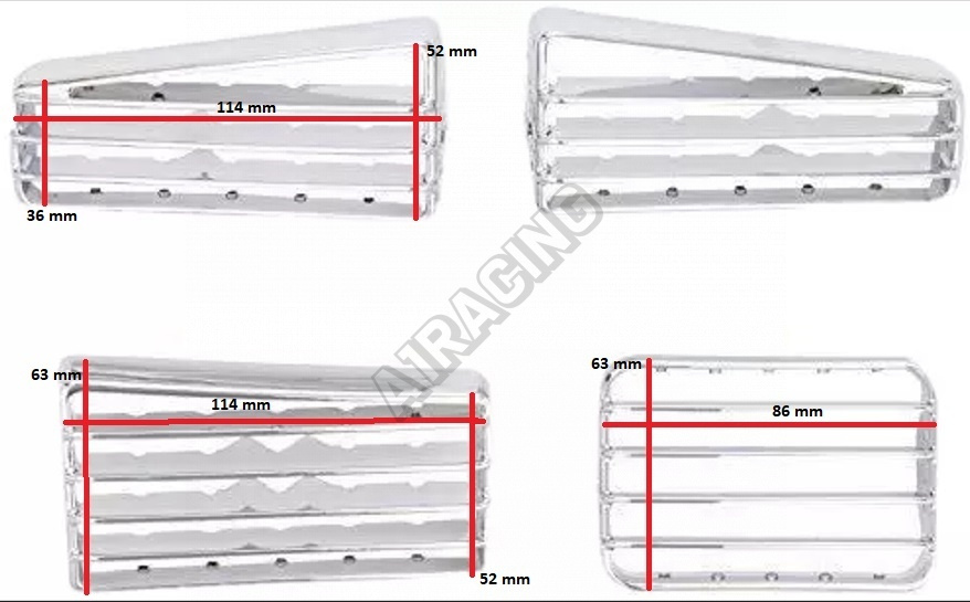 VW GOLF III ventilační mřížky do palubni desky chrom provedení 4 ks Montují se jako přímá náhrada z