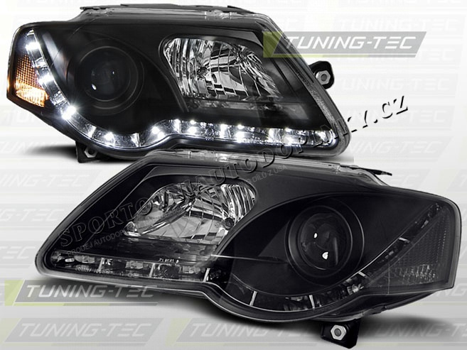 VW PASSAT B6 (3C) 2005-10 PŘEDNÍ ČÍRÁ SVĚTLA DAYLIGHT LED BLACK cena za pár 2 ks, tyto světla mají
