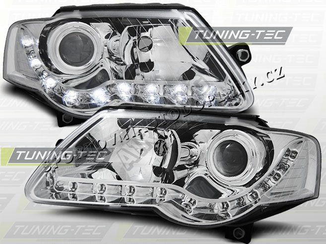 VW PASSAT B6 (3C) 2005-10 PŘEDNÍ ČÍRÁ SVĚTLA DAYLIGHT LED CHROME