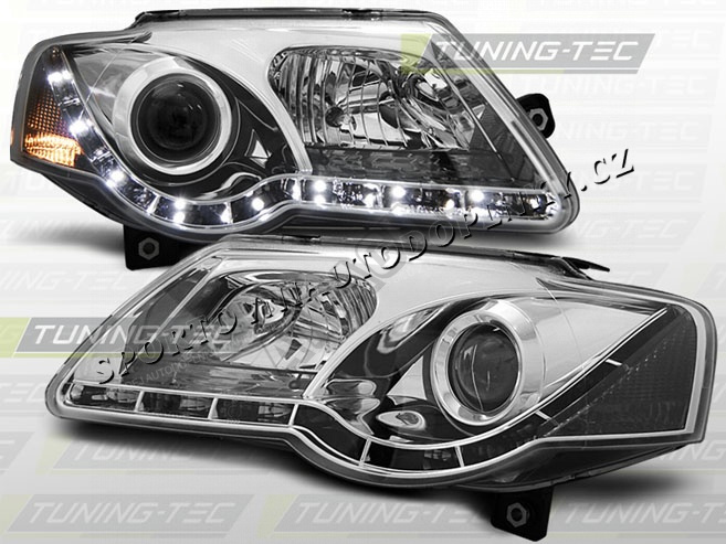 VW PASSAT B6 (3C) 2005-10 PŘEDNÍ ČÍRÁ SVĚTLA DAYLIGHT LED CHROME