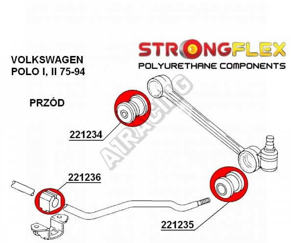 VW Polo do 2001 StrongFlex sestava silentbloků jen pro přední nápravu 6 ks obsahuje: