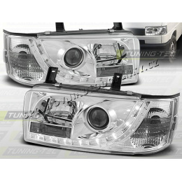VW T4 1990-03 PŘEDNÍ ČÍRÁ SVĚTLA DAYLIGHT LED CHROME