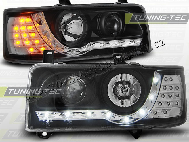 VW T4 1990-03 TRANSPORTER PŘEDNÍ ČÍRÁ SVĚTLA DAYLIGHT LED BLACK LED INDICATION