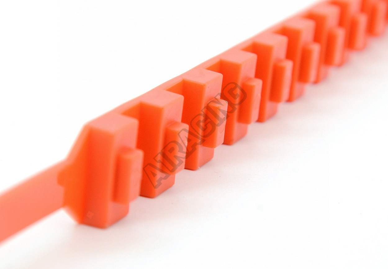 Na kolo se upevní jednoduše protáhnutím otvorem na okraji kola a utažením pomocí zámečku. Demontáž se provede jednoduchým přestřižením pásu.