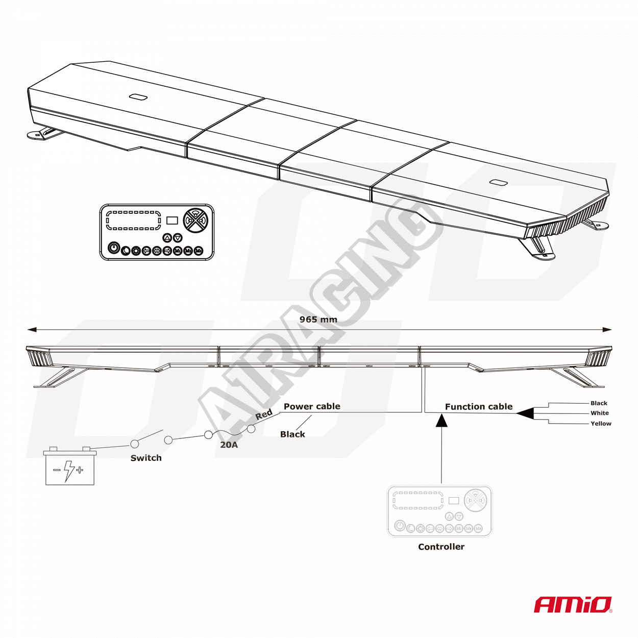 Výstražná LED lišta 1168mm má 51 funkcí. V sadě je dálkový ovladač pro ovládání zařízení. Je certifikovaným produktem v souladu s normami jako ECE R65, ECE R10 SAE