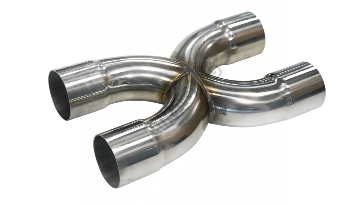Kovový spoj X-PIPE. Spojka je doporučena při konstrukci výfukového systému s motory typu V. Zrychluj