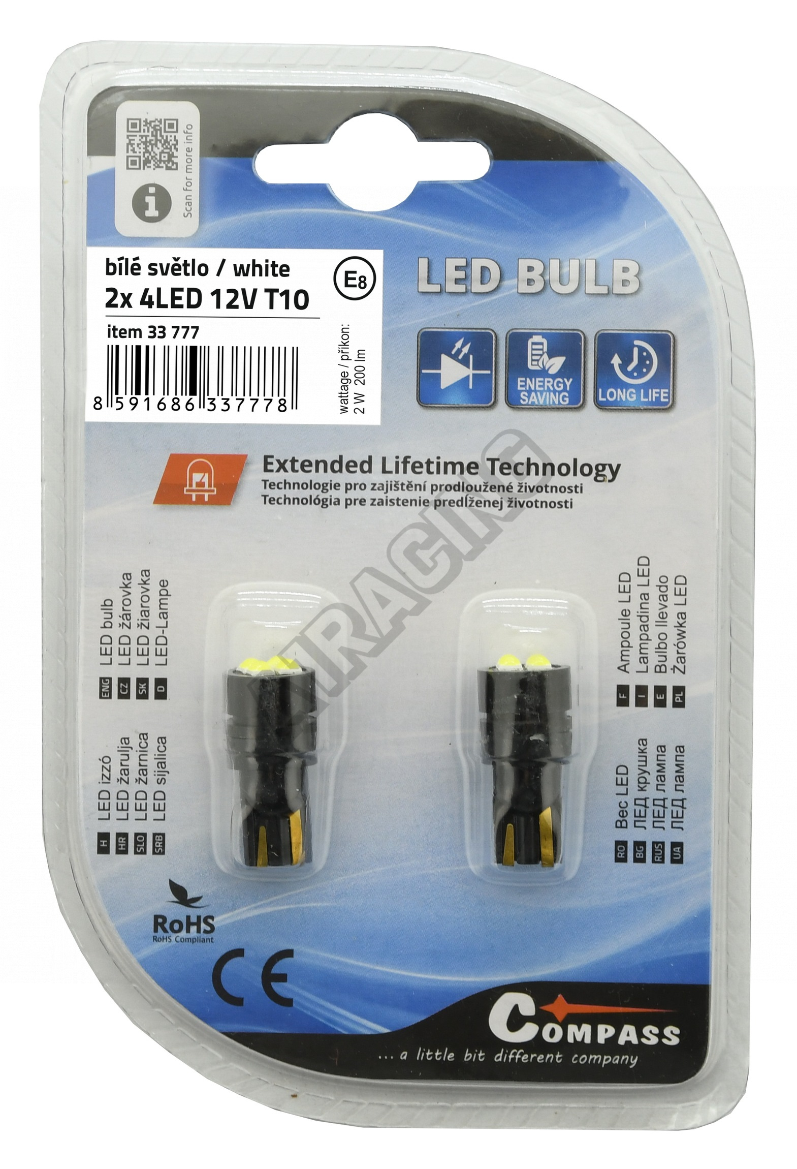 Žárovka 4LED 3030 12V T10 bílá 2ks