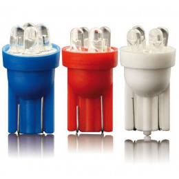 Žárovka parkovací T10 4 LED - 3 barvy na výběr - červená, bílá a modrá, pasuje za tuto originální ž