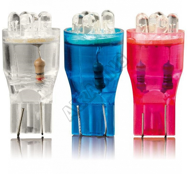 Žárovka parkovací T10 6 LED bílá, modrá, červená