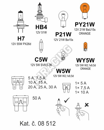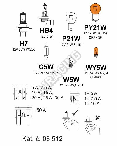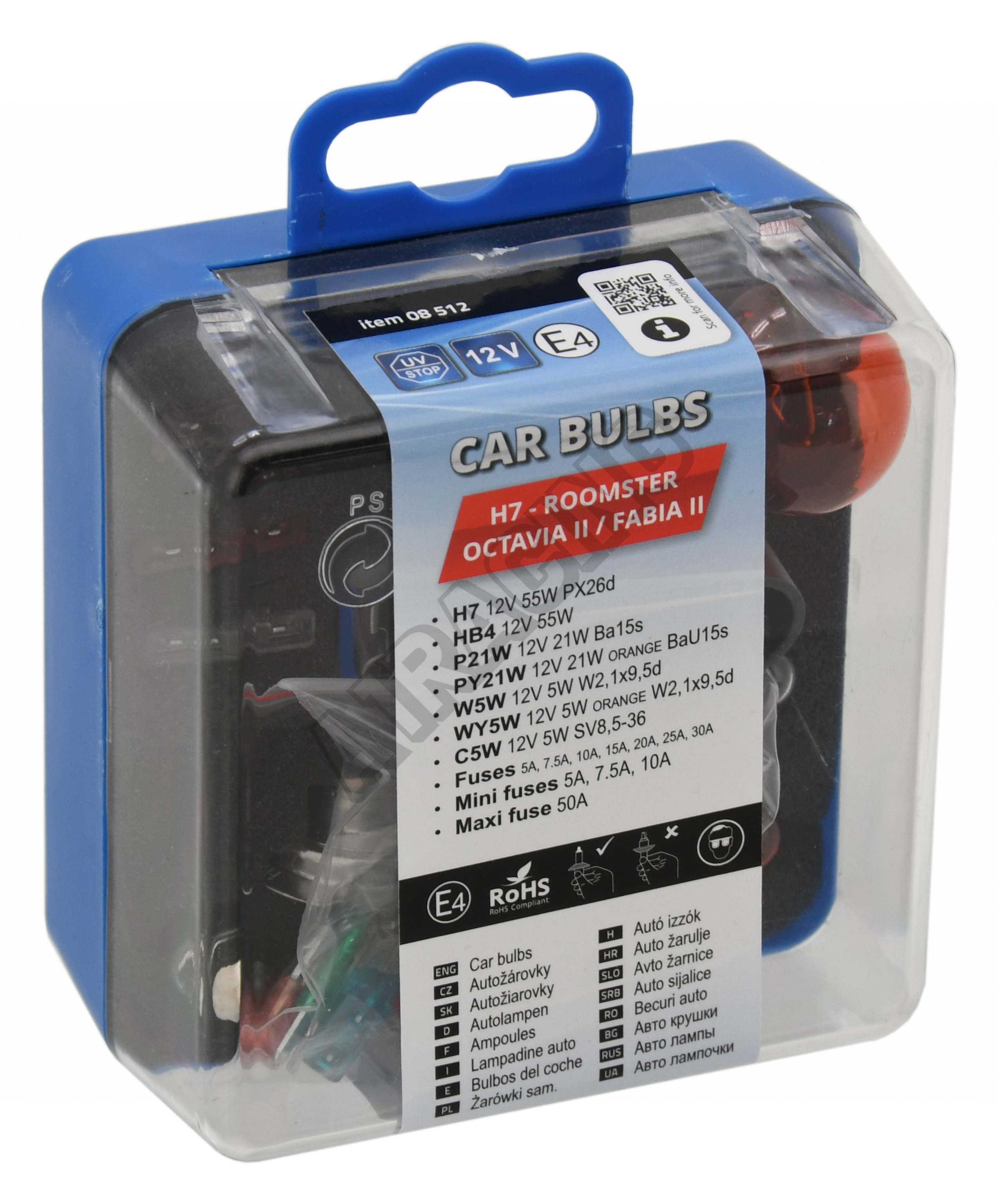 Žárovky náhradní box Škoda Roomster H7 + Oct2/Fab2 Plastová krabička náhradních autožárovek, homolo