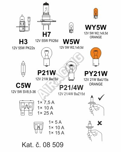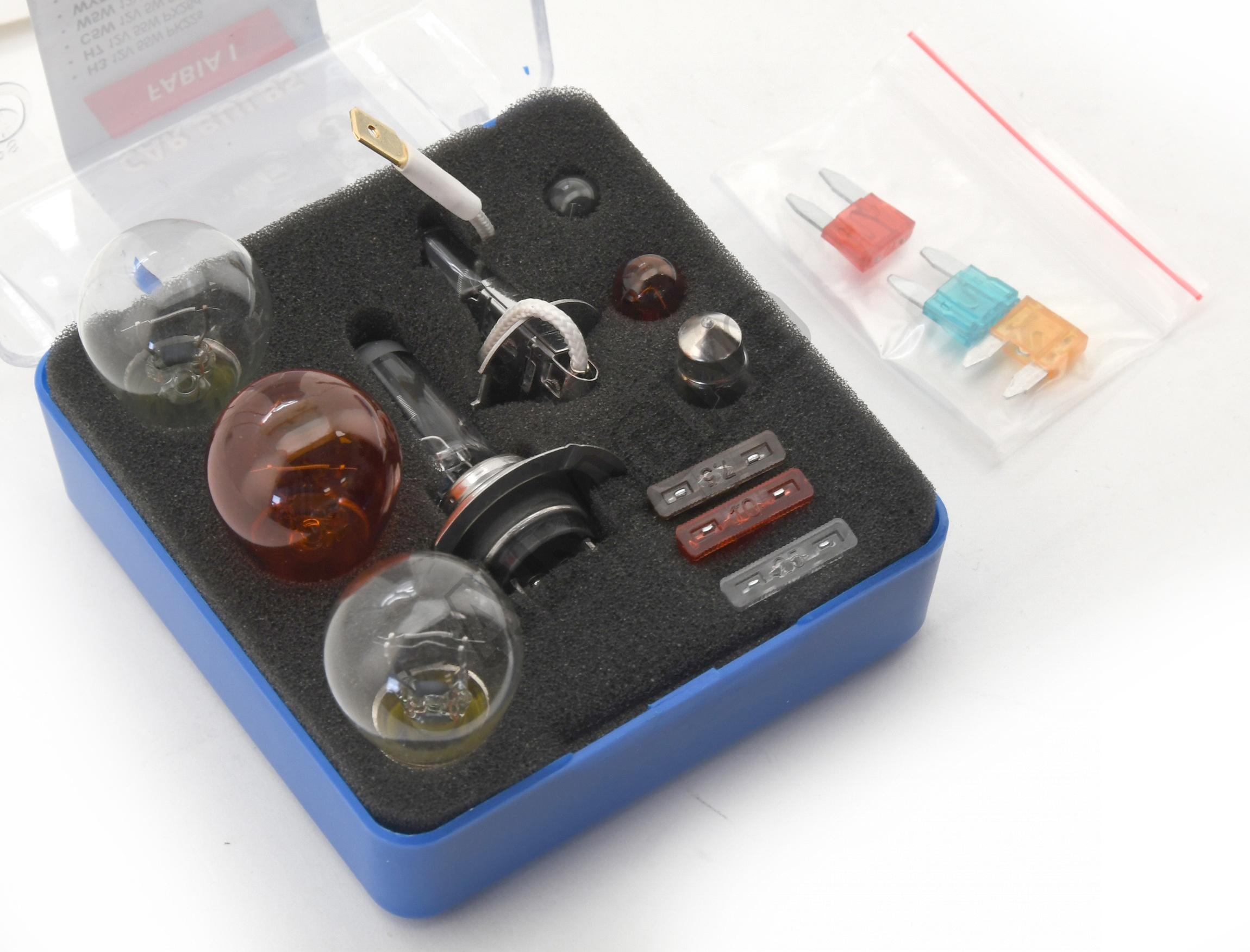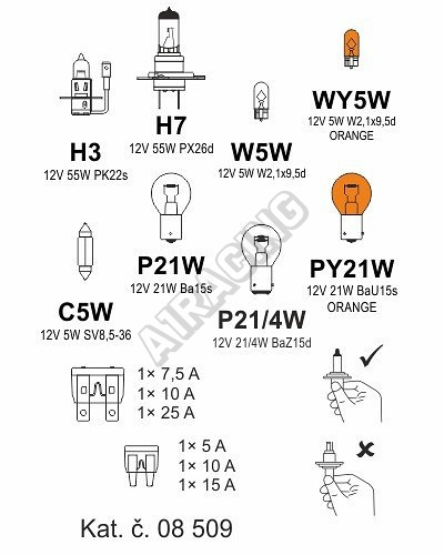 Žárovky náhradní servisní box Škoda Fabia I. Plastová krabička náhradních autožárovek a pojistek, h