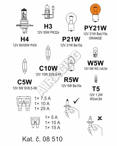 Žárovky náhradní servisní box Škoda Octavia I. Plastová krabička náhradních autožárovek, homologace