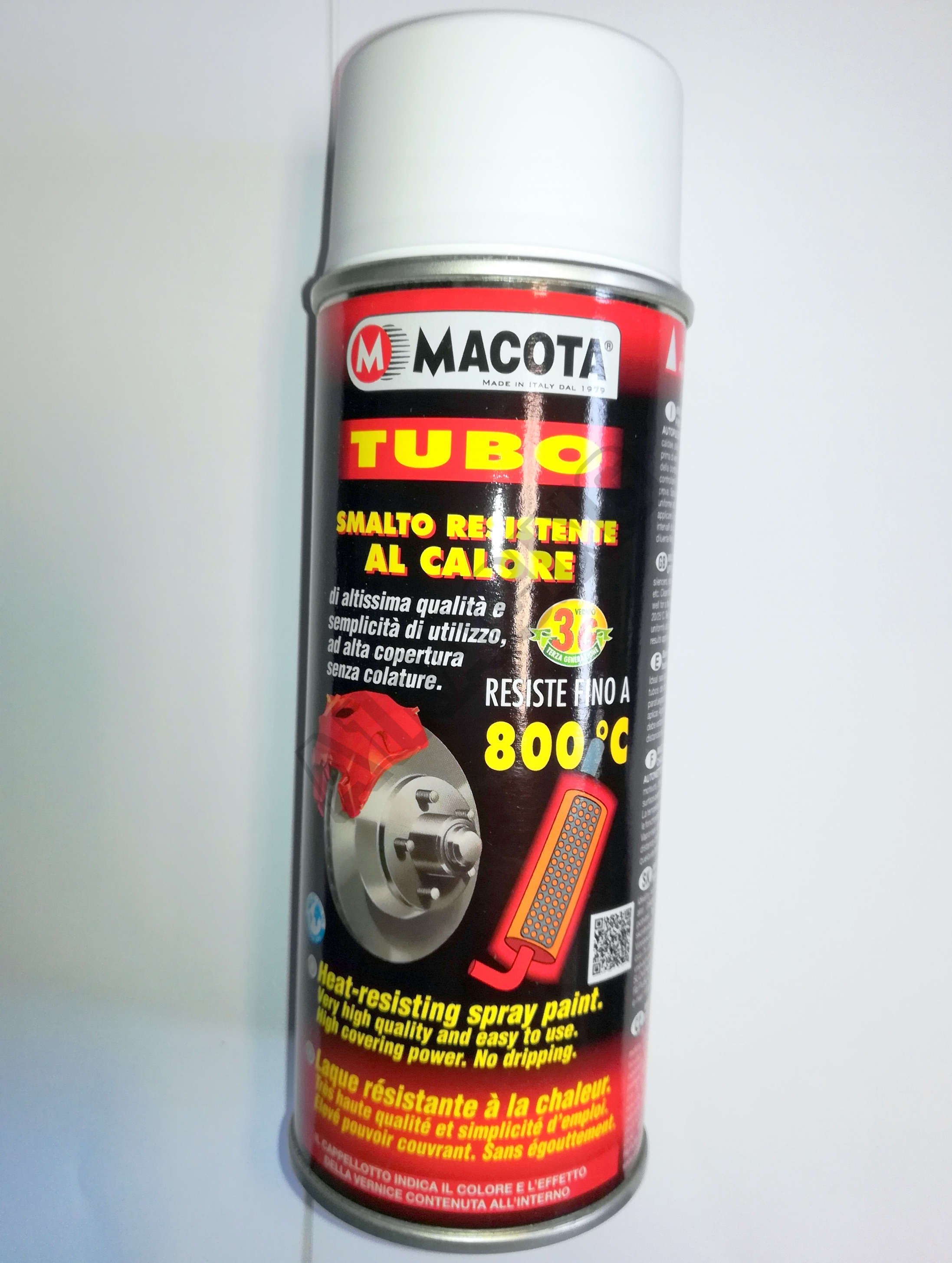 Kvalitní žáruvzdorná barva italského výrobce Makota ve spreji je určena pro díly, které jsou vystaveny teplotám až +800 °C, jako např. výfukové potrubí, brzdové třmeny , nebo třeba kryt motoru apod. Barvu je možné stříkat bez ošetření přímo na kov po důkladném odmaštění. Kvalitní tryska zajišťuje rovnoměrný nástřik.