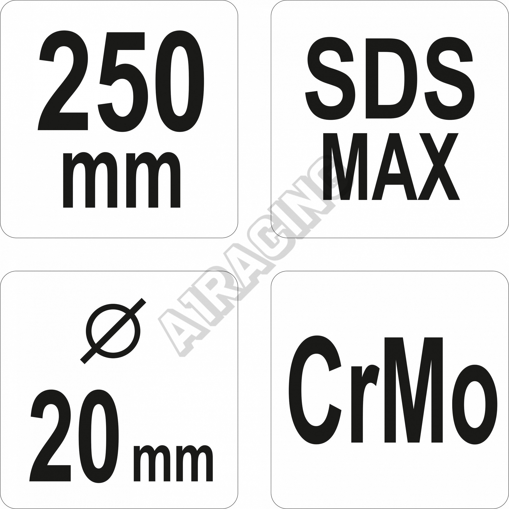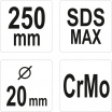 Nástroj je přizpůsoben pro práci s vrtacími kladivy sds max, např. yt-82131 nebo yt-82135. Vyrobeno z oceli odolné proti deformaci.